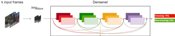 Implemented Densenet architecture for Pedestrian Intention Prediction in a traffic setting. Open-source data was used and processed in a data pipeline.